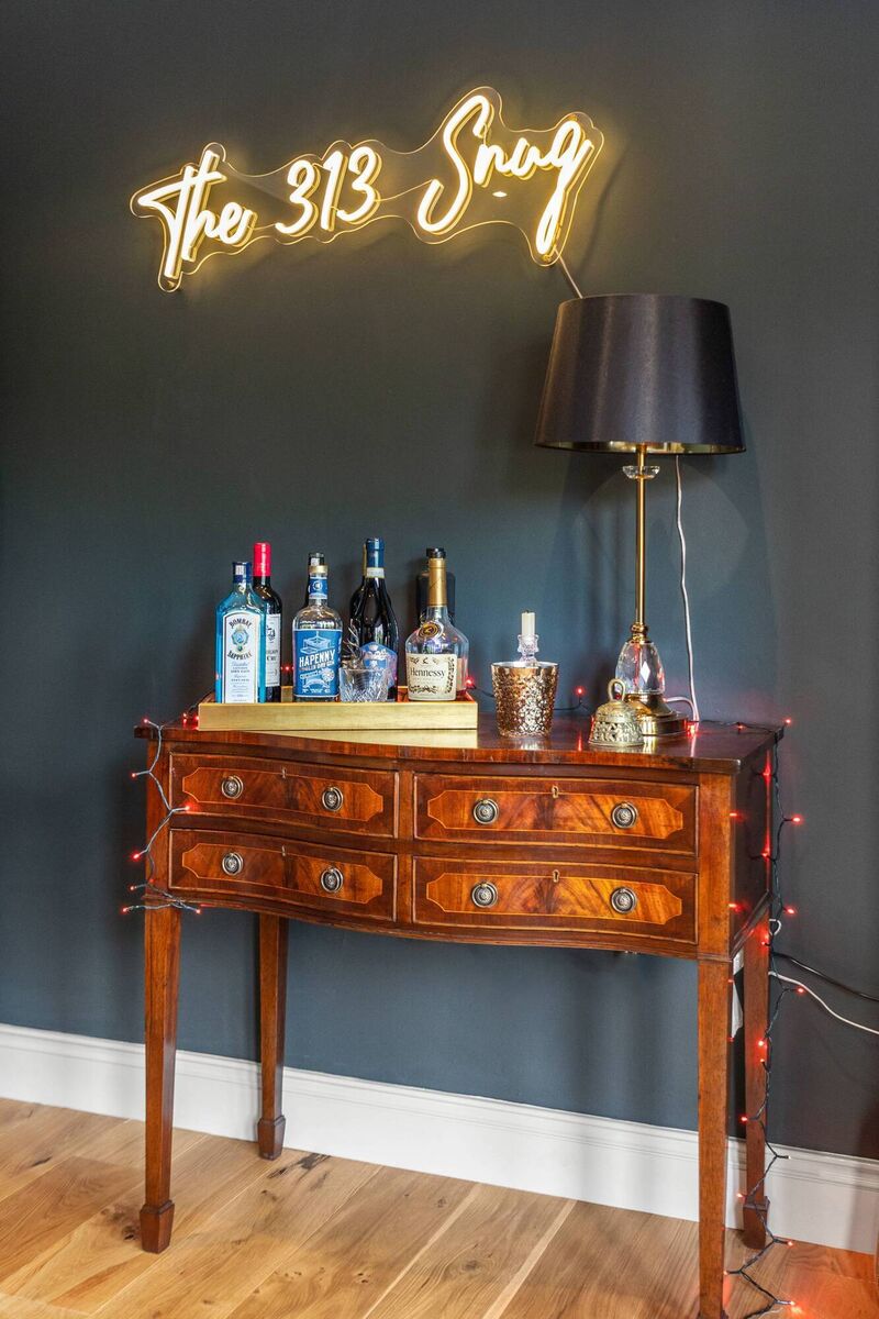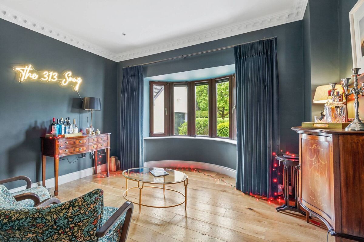 When it comes to quality and bespoke flourishes, this Curraghbinny Road home is right up there, from the cleverly hidden coffee station in the très raffiné kitchen, to separate His and Her ensuites off the main bedroom, to ‘The 313 Snug’, a room with its name up in lights, the kind of space Roger Sterling or Don Draper might hang out in, after a day on the set of Mad Men.