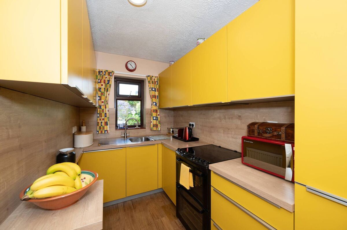 Taking great care of the house and garden , they have extended it over the years with a front porch and a sunroom at the rear. “In recent years they fitted an expensive KUBE kitchen — opting for bright yellow units to make it colourful,” says auctioneer Mark Rose, quoting a guide of €335,000.