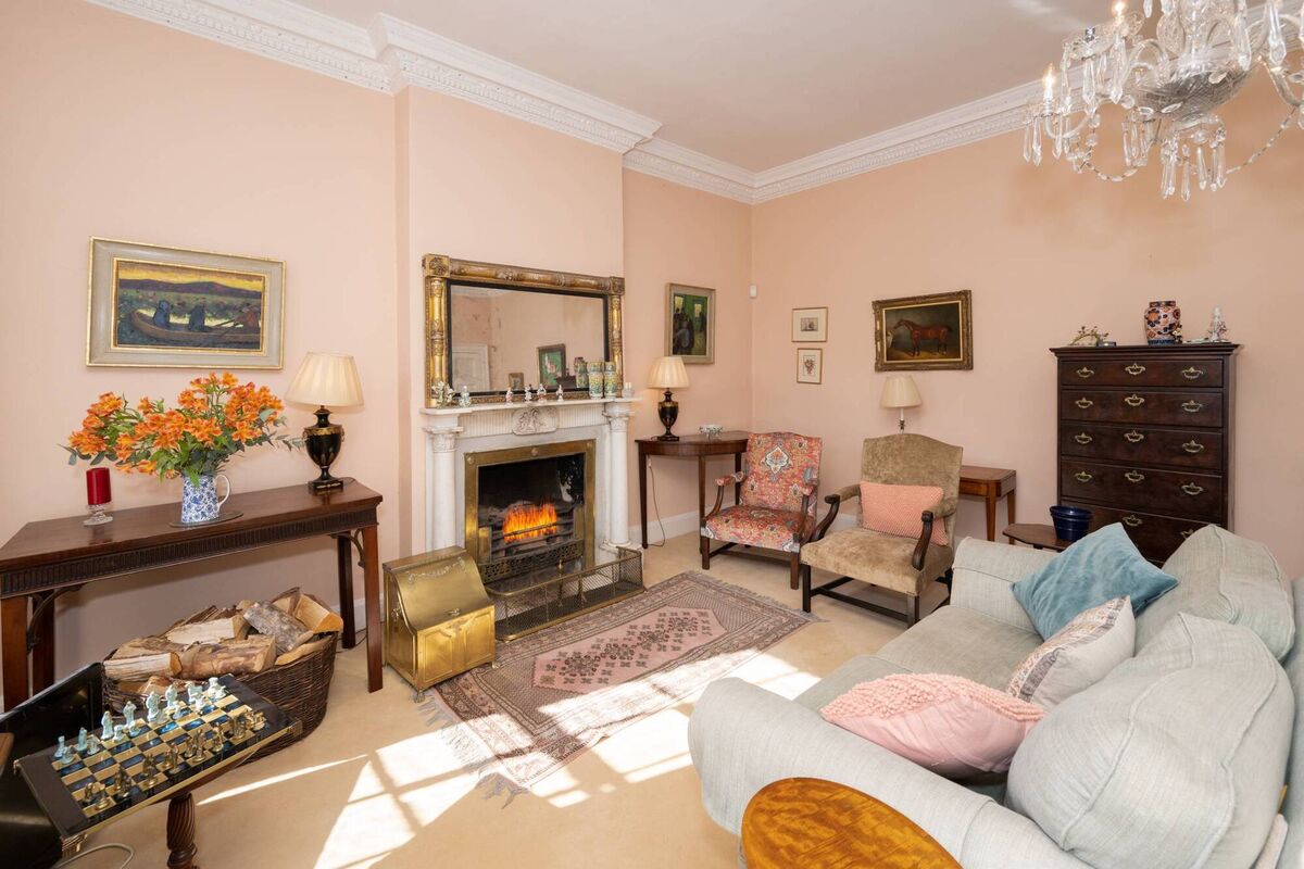 Standing proud among its horticultural finery, Poulnacurra today is a 500 sq meter (5,300 sq ft) quality period home, two stories over a basement, with exceptional and appropriately-furnished reception rooms (one has an Adam fireplace,) lofty entrance hall with front door that’s close to 9’ high, wide pitch pine staircase with pitch pine low paneling around its turns, and a first-floor landing large enough to hold the family’s grand piano.