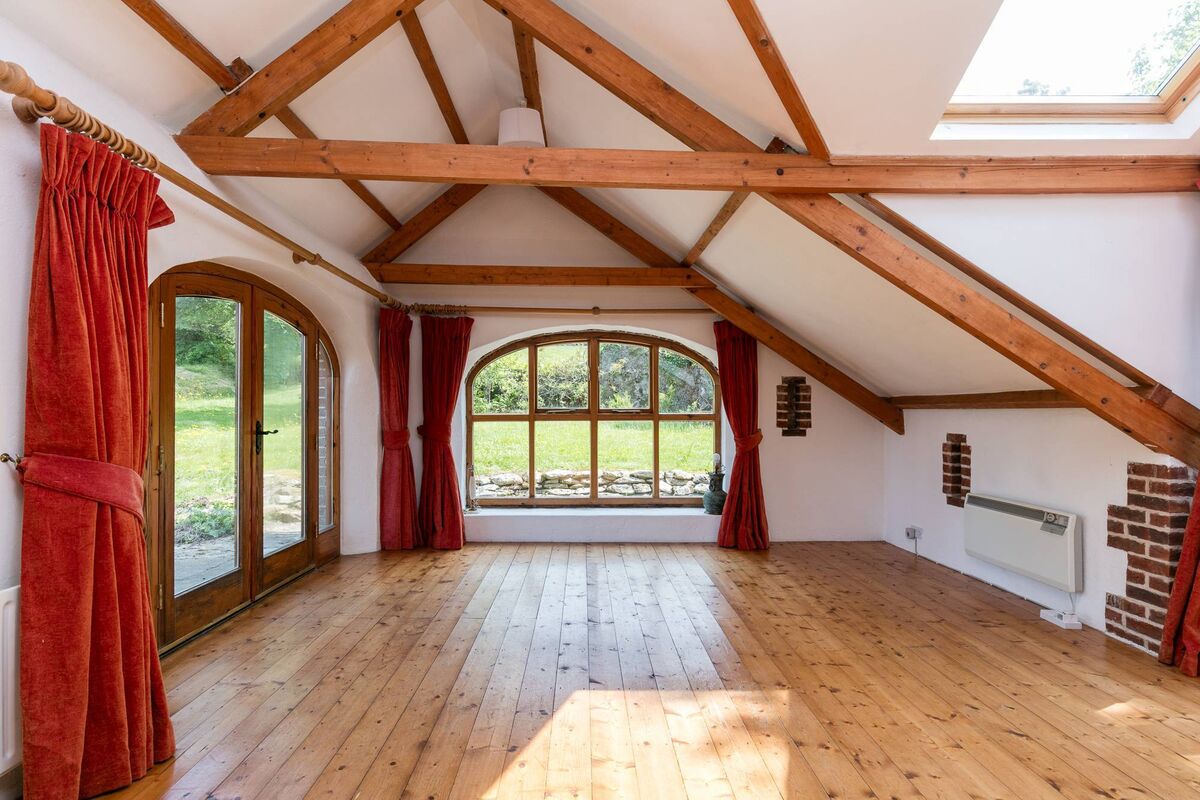Inside the cottage, all the ceilings are beamed and all the walls including the incredibly thick ones, have been painted white.