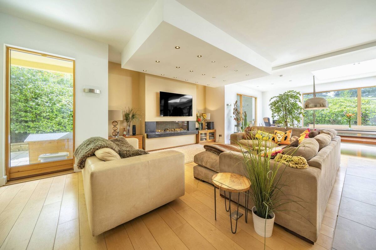 At nearly 1,000 sq ft or about half the property’s ground floor area, it’s an immense room split carefully into different functions, with a high-gloww, high-capacity gloss kitchen mixed with limestone and walnut and has a scene-setting ‘land-mass’ sized island topped in a mix of materials and purposes with halogen hob, main and prep sinks in stainless steel, and abundance of Miele appliances including multi-oven and microwave, huge slab-fronted fridge with freezer drawers under, encased in walnut. It was done by specialist maker Coachford-based Nick Moody, and is going to suit any level of cook, from home far to high-end haute cuisine.