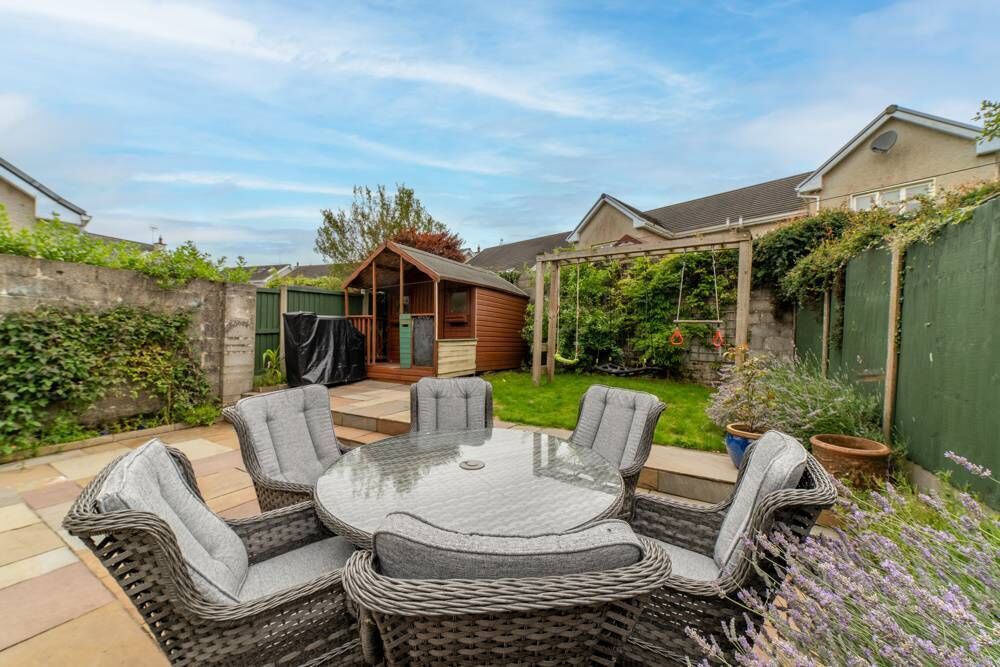 The 156 sq m home has a west-facing rear garden too, with enough room for a generous patio and small lawn area, as well as a Barna shed.