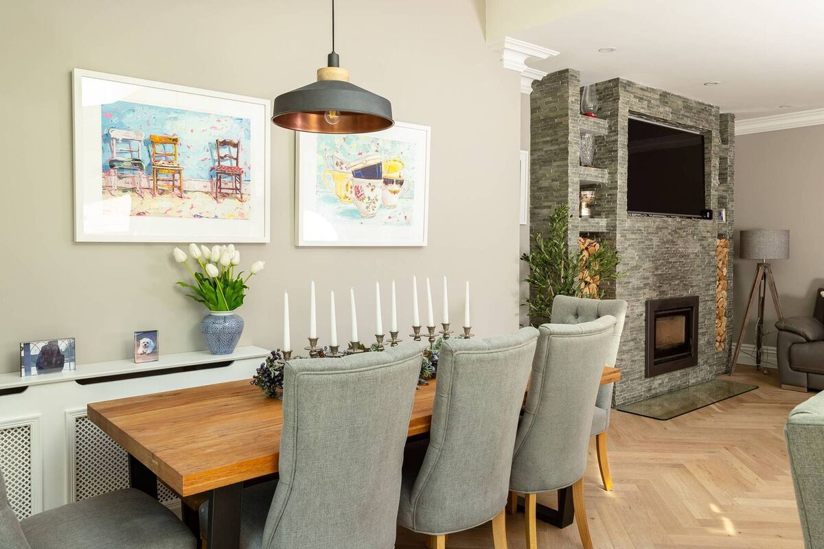 It was all done without going higher than the existing roofline, while the side extension is slightly set back from the main/original facade, now all re-rendered, painted a pleasant green and with sliding sash windows pretty much throughout (triple glazed and supplied by Munster Joinery who also did doors etc, helping hit the significantly improved B1 BER and thus allowing access to reduced green rate mortgages for next owners/occupiers).