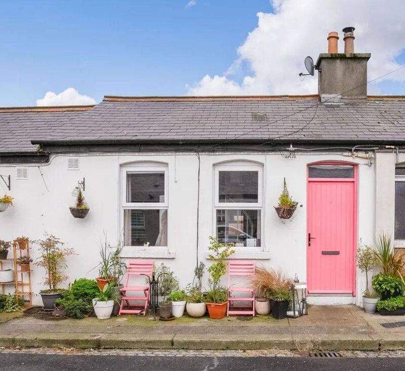 With white walls, a pink door and matching seats, the exterior of No 114 Rialto Cottages in Dublin 8 looks pretty enough to make a dream home for Barbie.