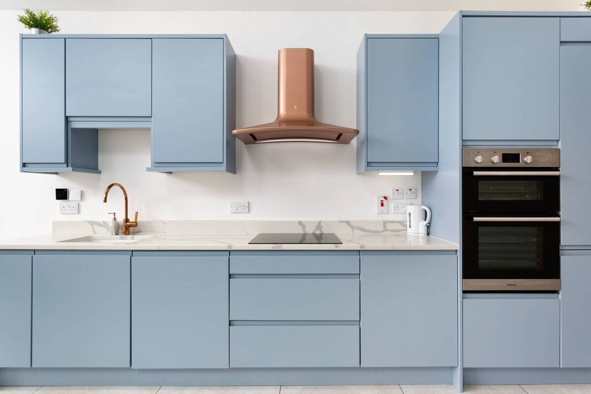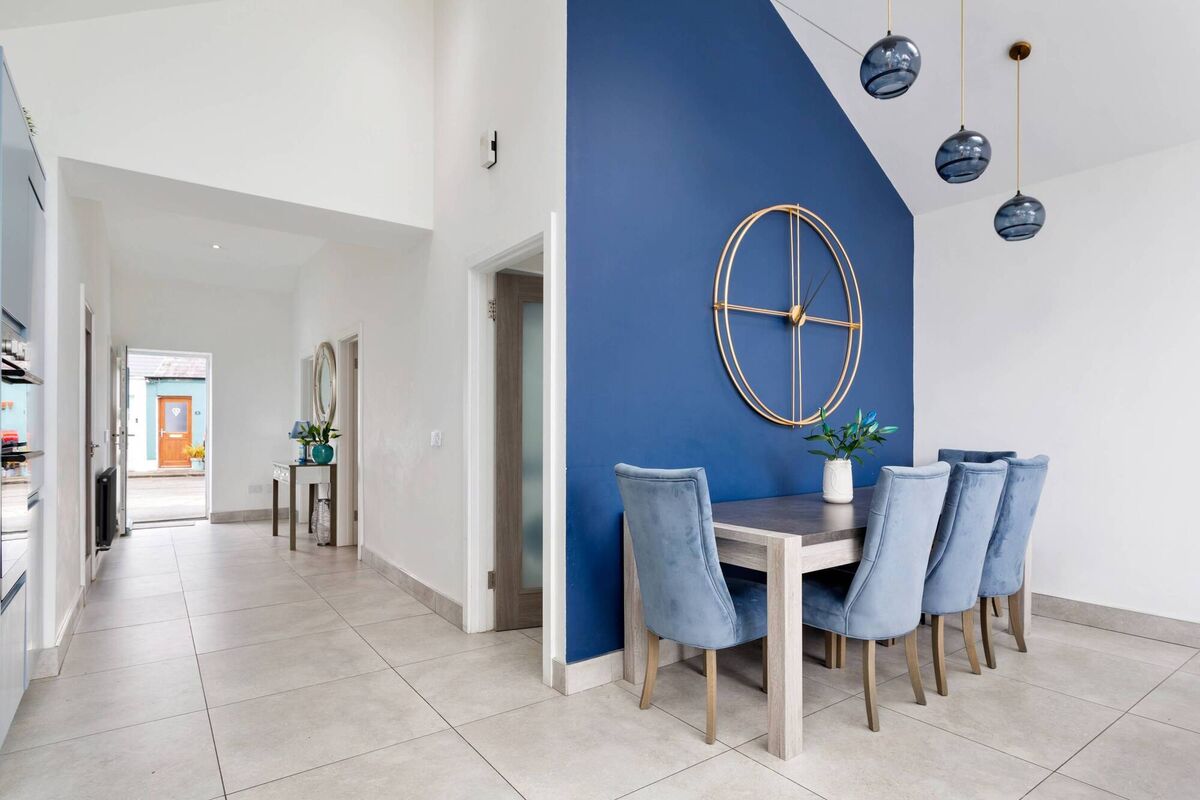 The layout has been reorganised so that the property’s bathroom and three bedrooms (one en suite) are now located at the front. In the extension, there’s a small utility and a large open-plan kitchen/dining/living space which has a vaulted ceiling with roof lights and a fully glazed rear wall.