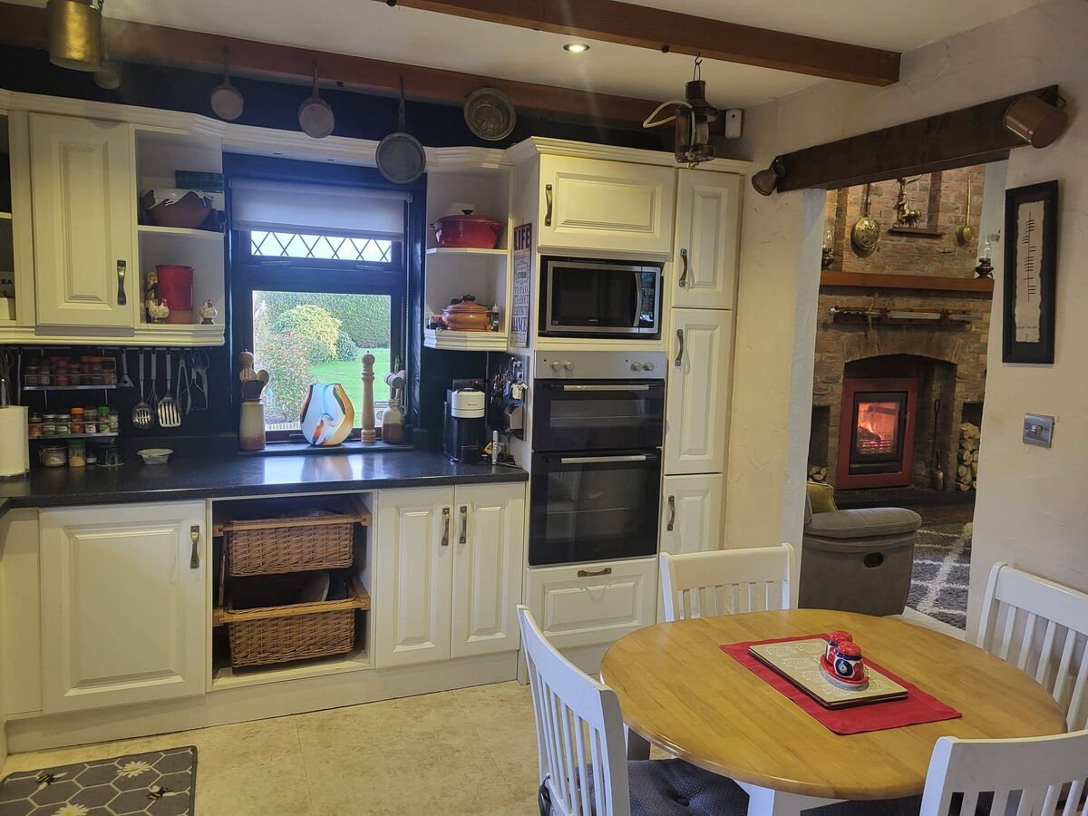 Features on the interior of the early 2000s built four-bed dormer bungalow include part timber panelled walls and some exposed brick ones, and its sitting room – which has a double height ceiling, exposed beams and a tall brick fireplace with a stove - is very traditional looking.