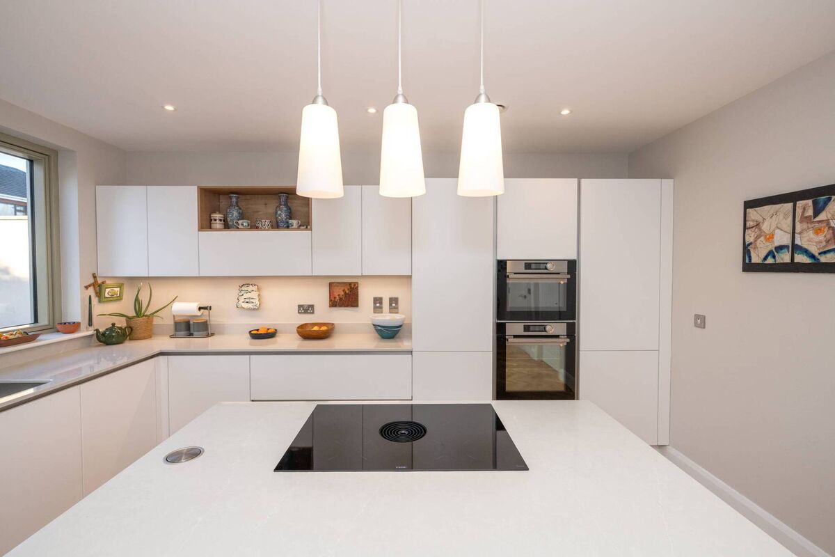They included extra bells and whistles in the already high-spec Kube kitchen, where a Bora induction hub sits on the sleek white kitchen island and a built-in extractor fan works its hidden magic underneath.