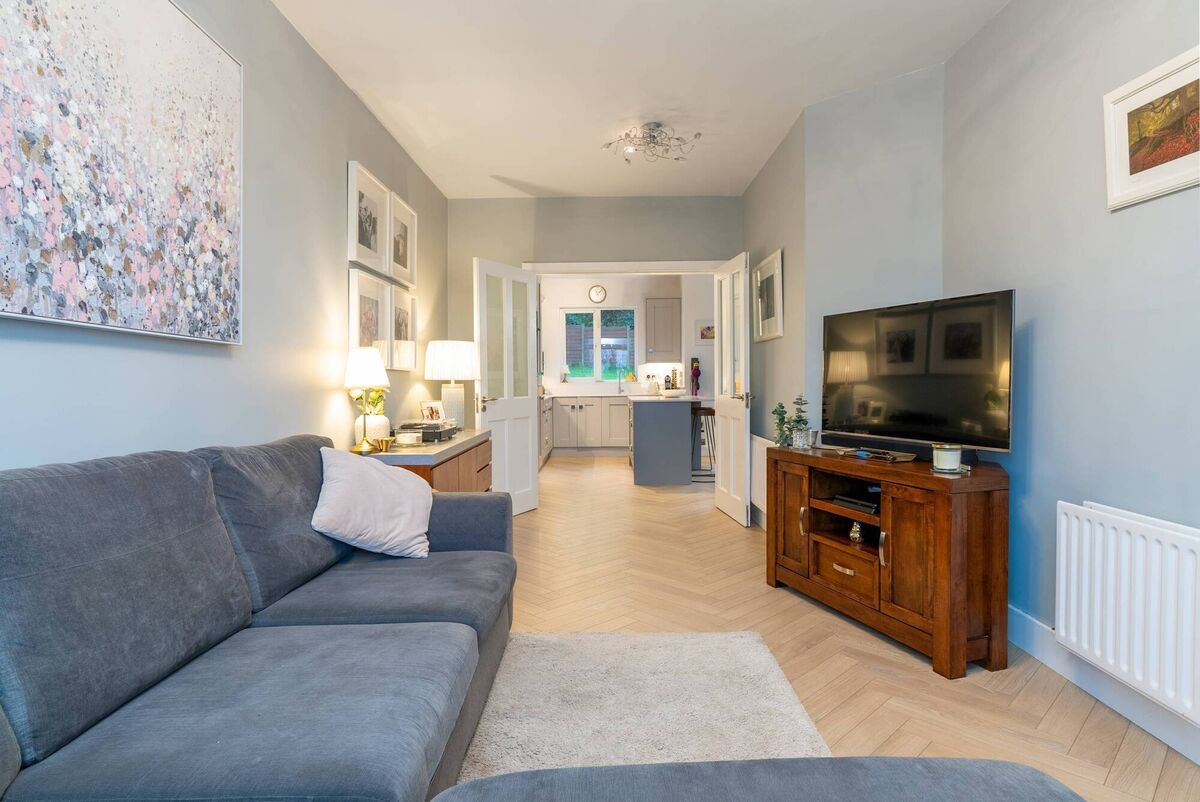 A lot of the work was done in 2019. In addition to the sleek new kitchen with its solid timber units and contrasting quartz stone countertop, the couple fitted herringbone flooring in the entrance hall, the living room and the kitchen/dining room.