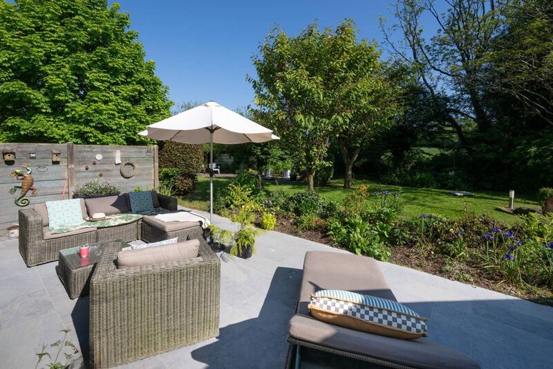 The patio, which faces east, gets the sun “until 7pm in the summer”, says Cathy, and it stays even later in the garden.
