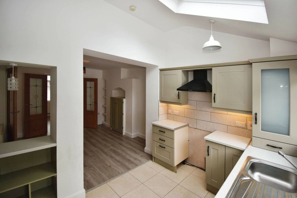 The front door which opens onto a main road isn’t in use and the property is entered through the kitchen door at the rear.