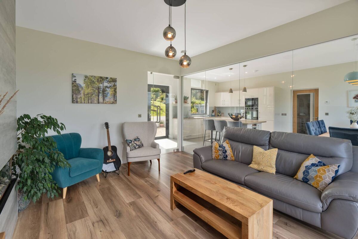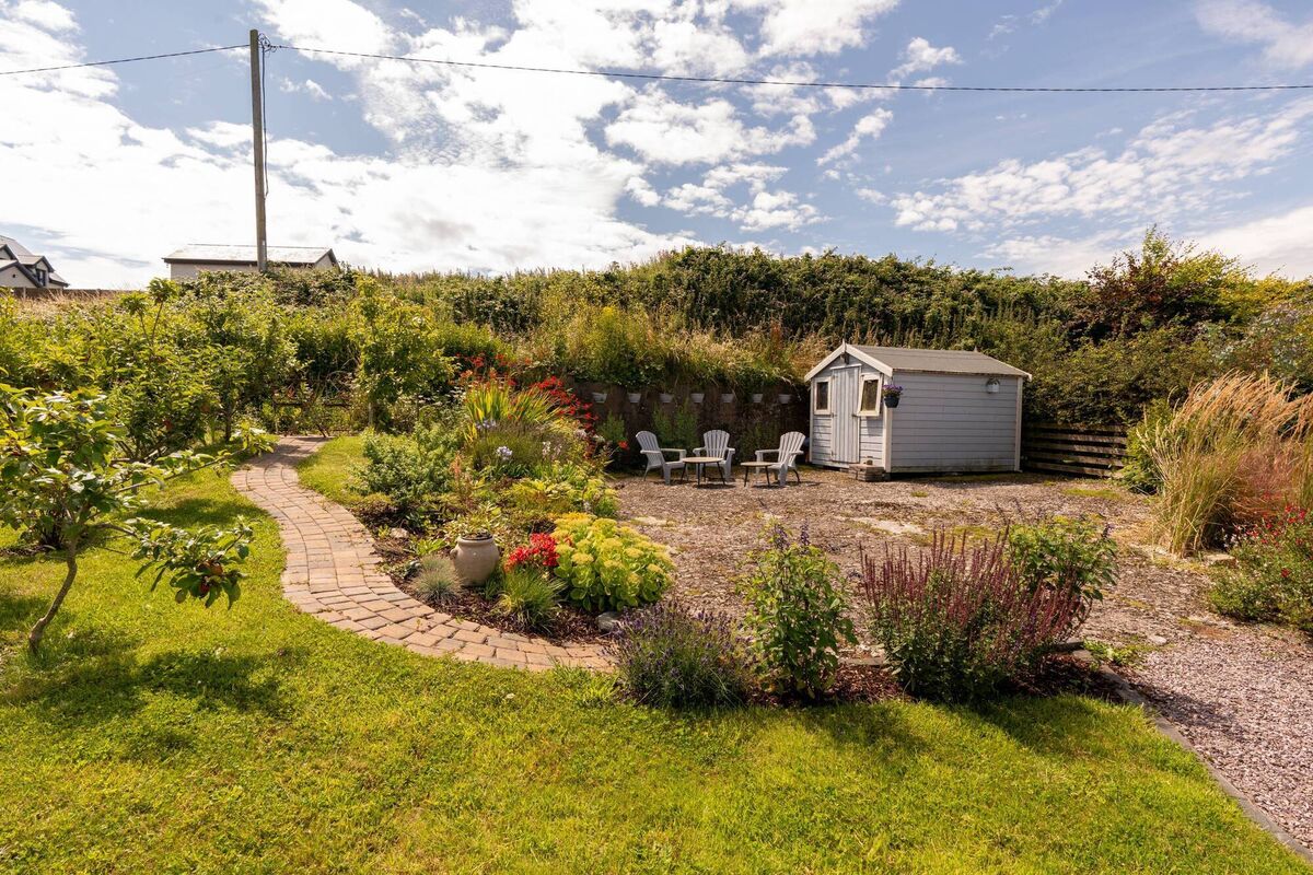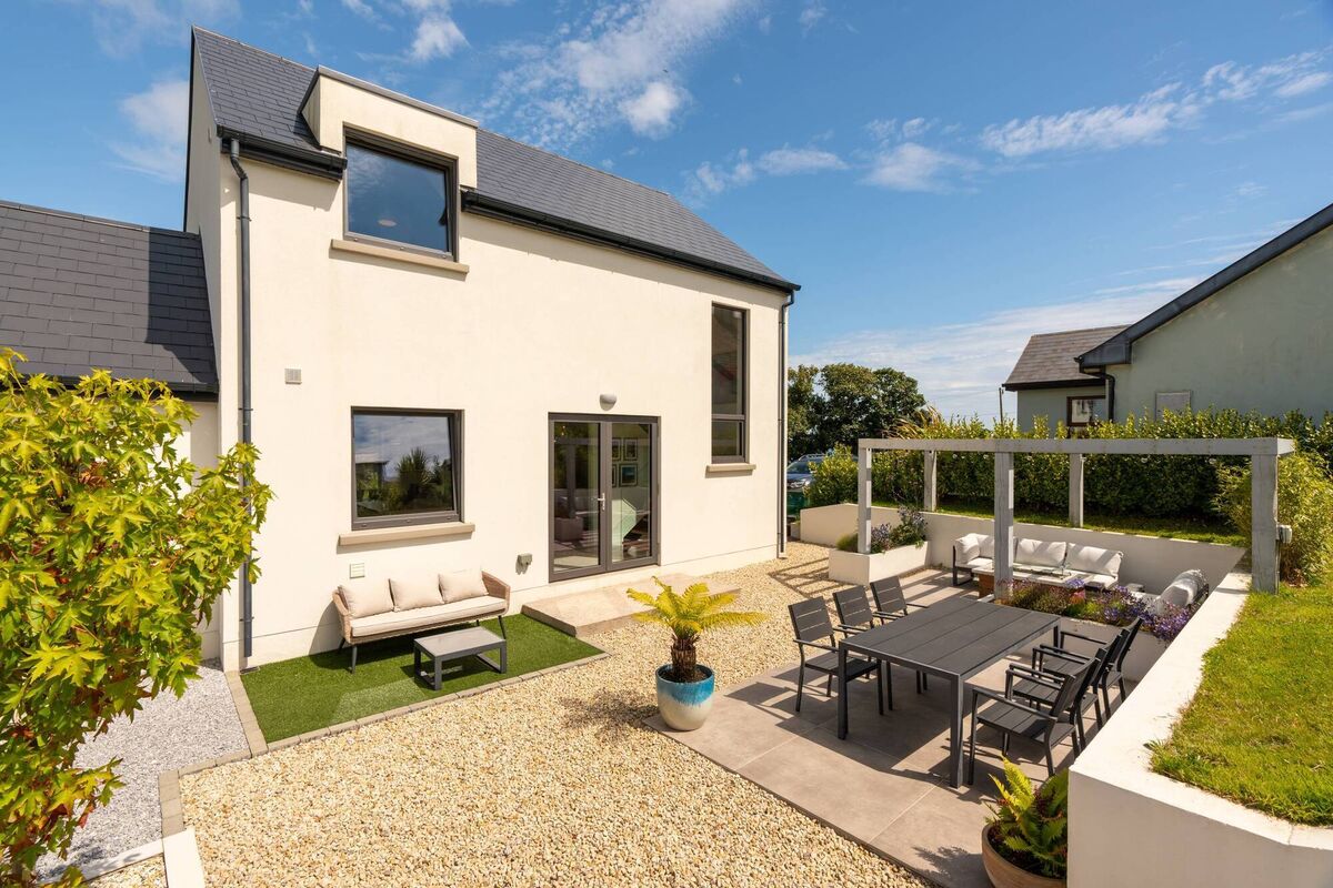 As if that’s not enough, there’s a separate dining area, also set on porcelain tiles; a sitting-out area outside sliding doors to the rear, set on astroturf; and a cobble-brick area for a barbecue.