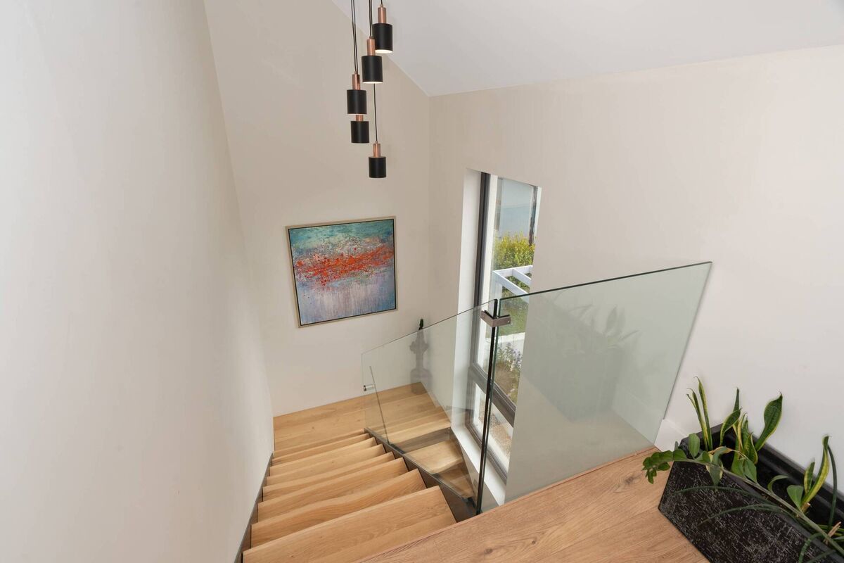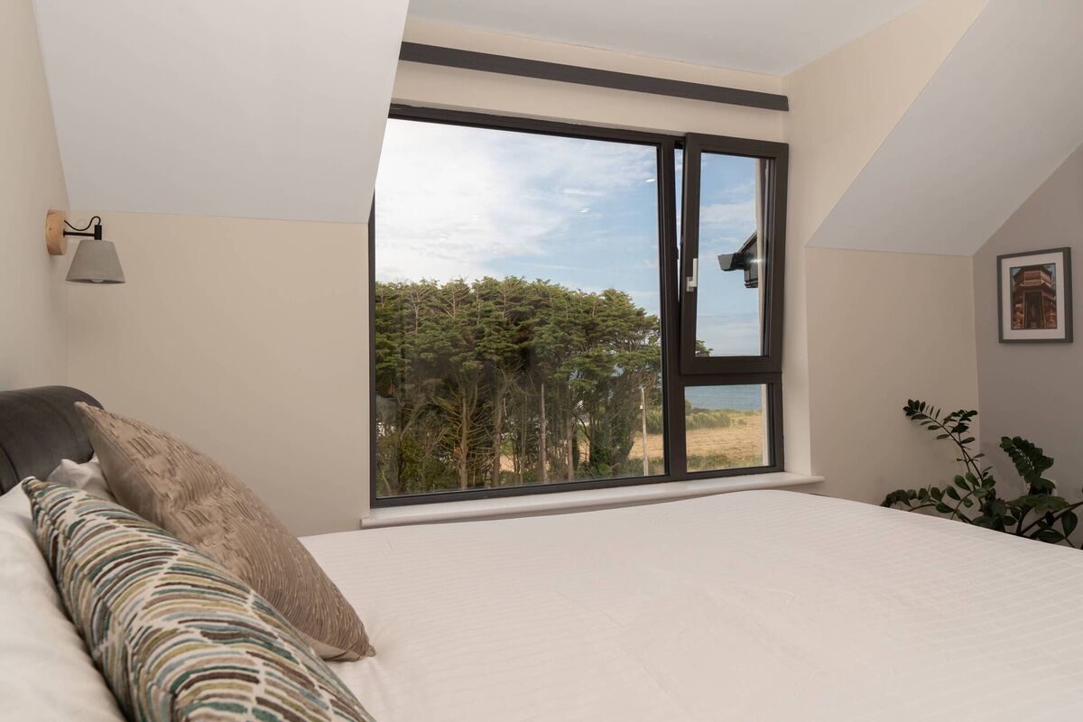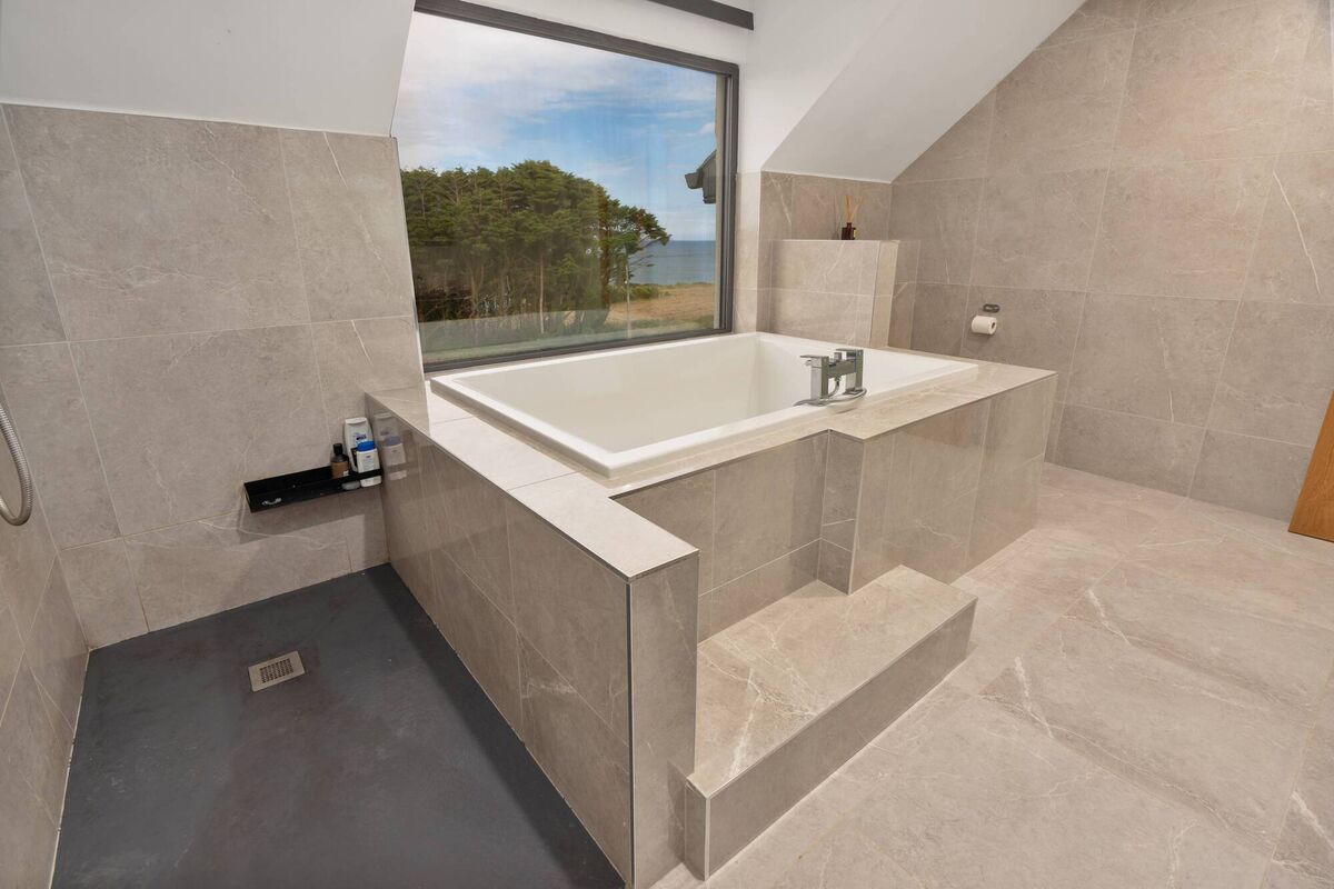 Upstairs, both main bedroom and main bathroom have sea views.