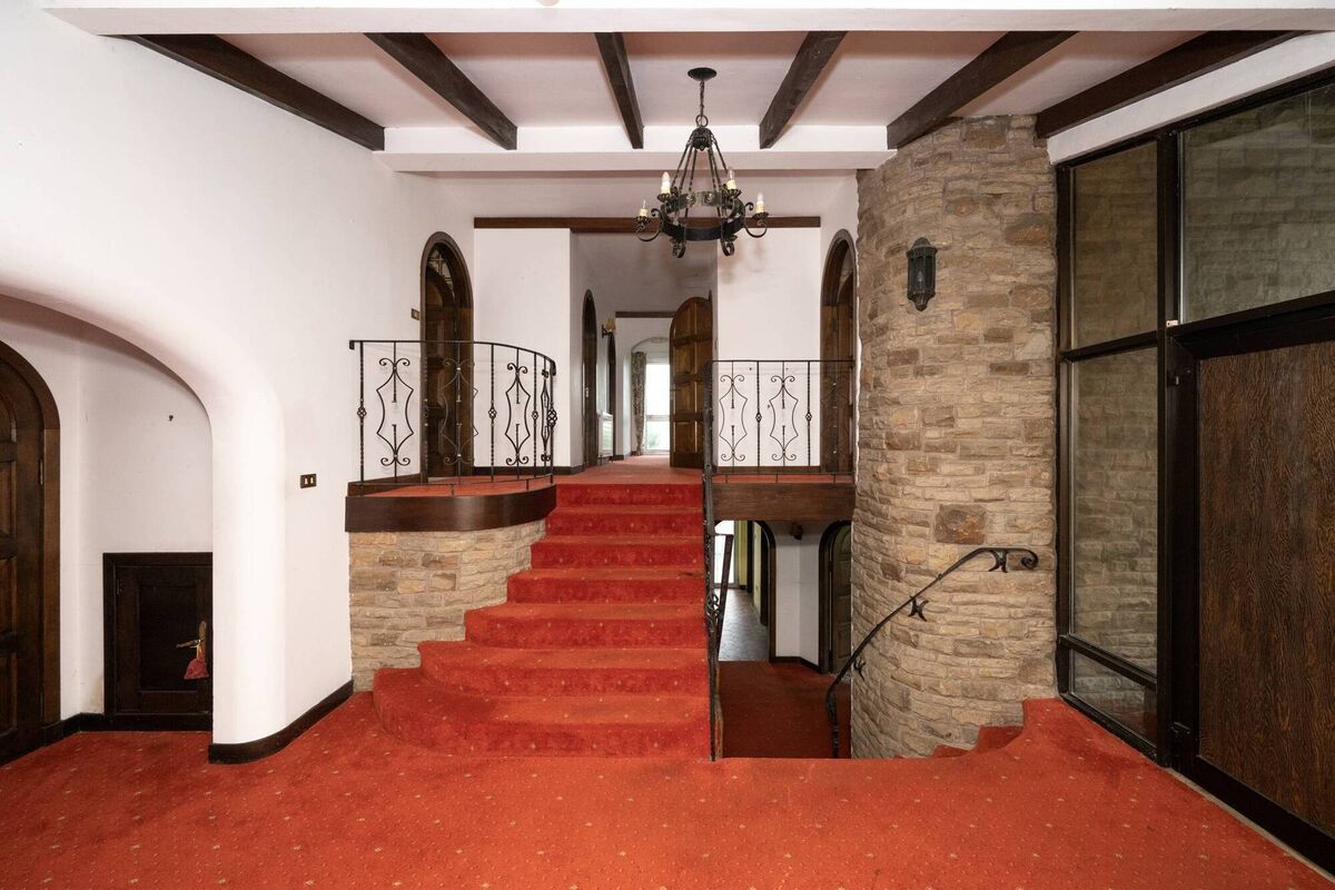 There’s more delicate wrought iron detail in the double doors to the main living room, off the wide hallway.