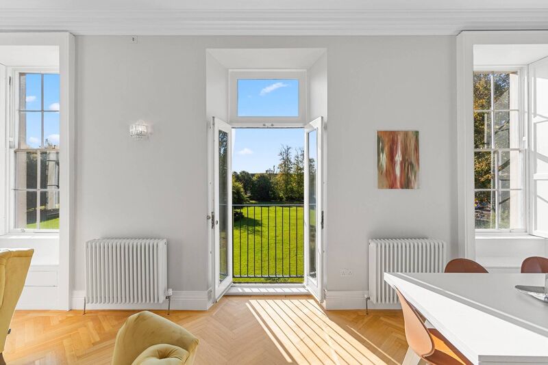 It also has the same landscaped garden/grounds access, as well as a Juliet-style glazed door/balcony overlooking the rear gardens (most apartments here don’t have private outdoor space such as balconies, patios, etc).
