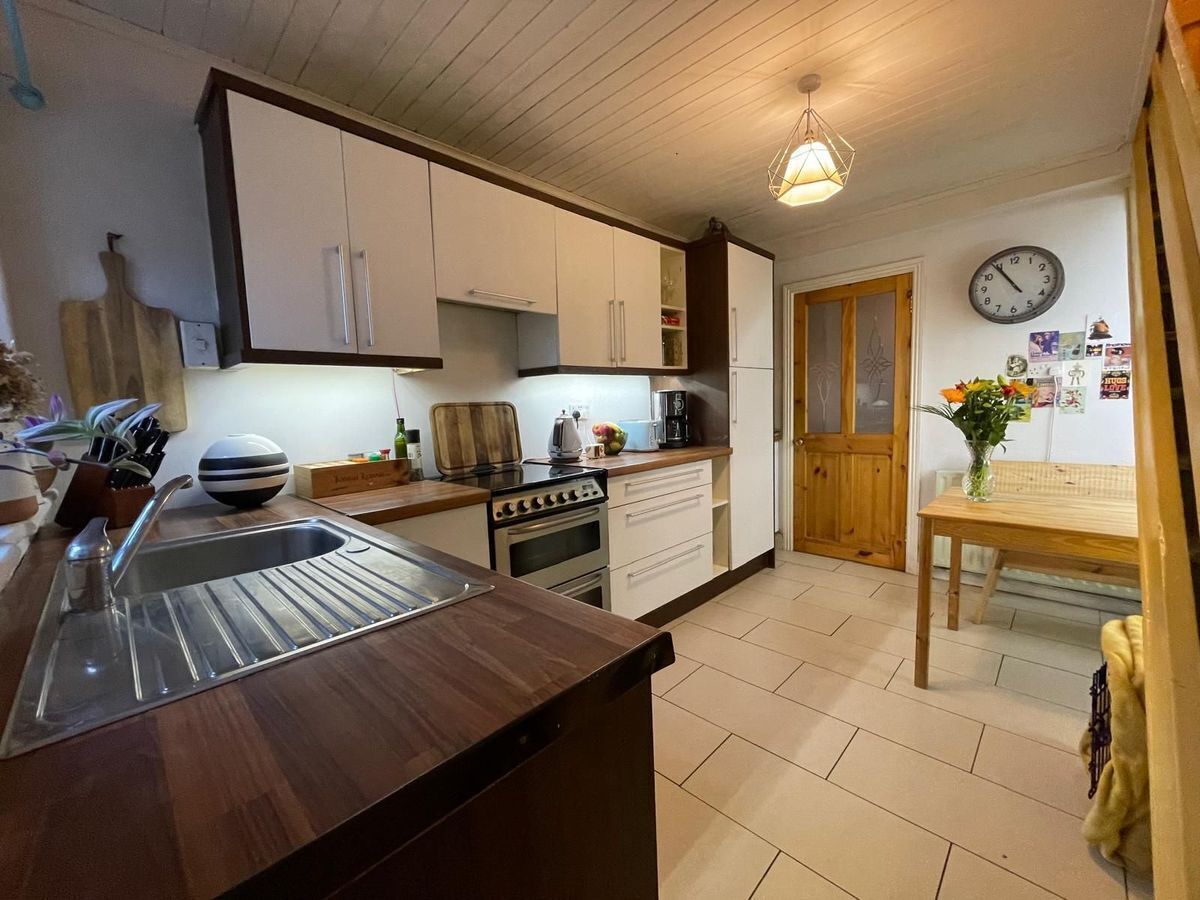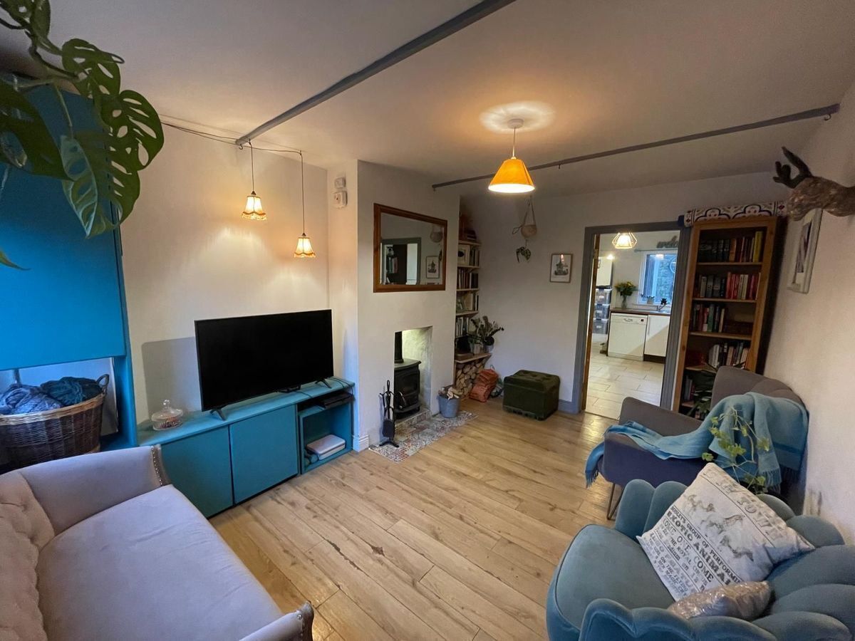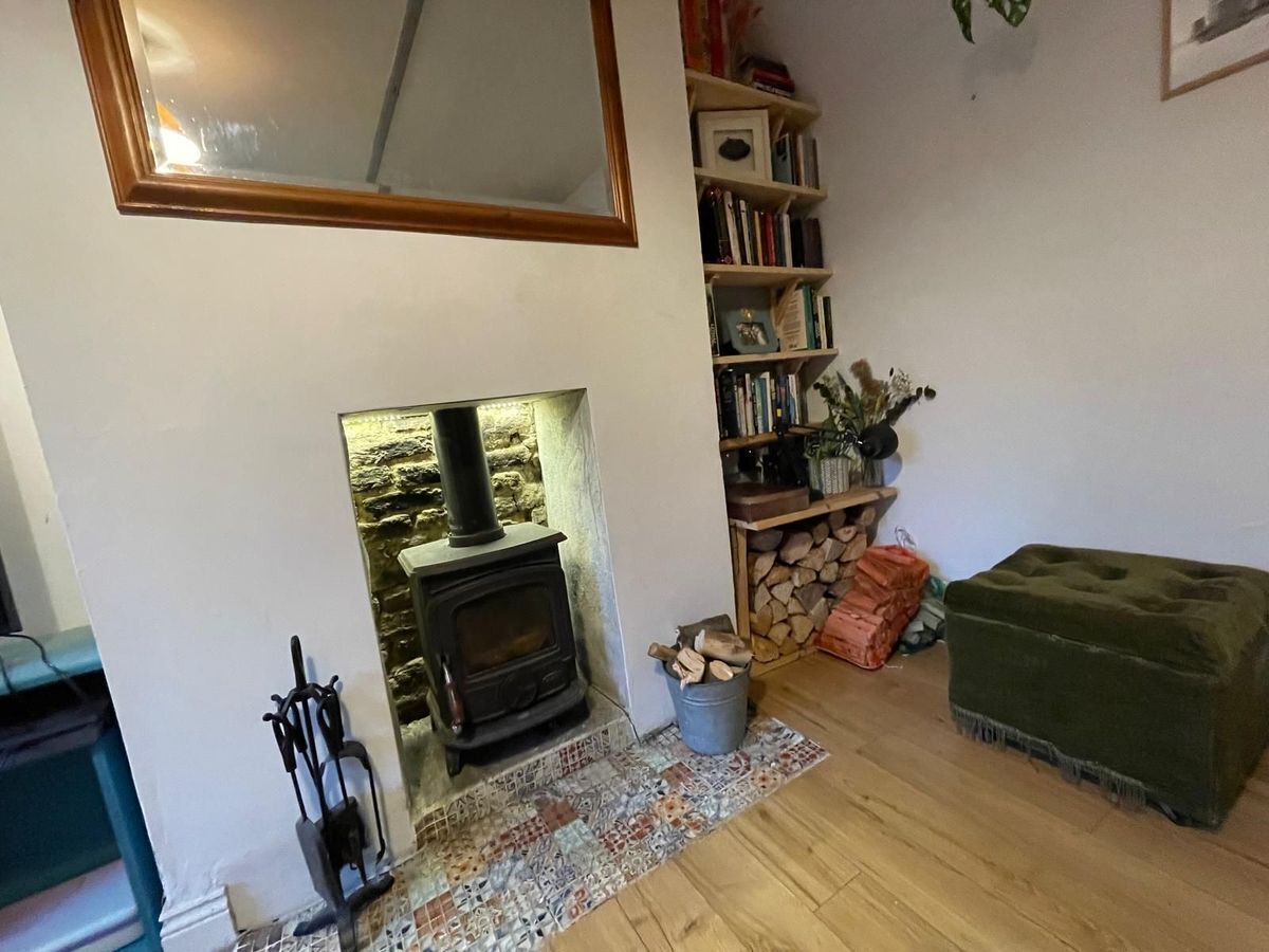 Accommodation includes a sitting room with a stove, a tiled kitchen with cream units and a small utility area at the rear The upstairs has a shower room and two bedrooms, one of which is used as a home office.