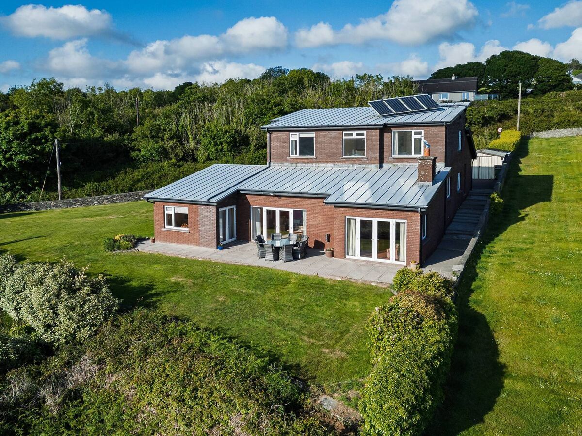 Built in the 1980s, it’s a C2-BER stamped, and brick-faced 2,628 sq ft three-storey home, on a third of an acre landscaped sloping site that manages to fit in up to seven bedrooms, under a pressed metal or zinc roof, mono-pitch, with all-brick external leaf and walls have been pumped with insulation.