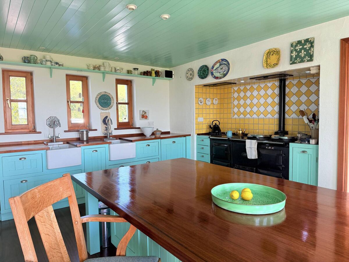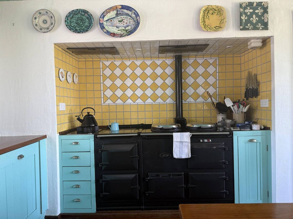 The oil-fired Aga (Jack Zagar never quite shook off his old industry background?!) is Julia’s pride, and also her particular joy, for several reasons. One, lesser likely one? She stops to remove and cradle a much polished rounded stone from one of the lower warming ovens which she says she takes with her wrapped in a towel when wild and sea swimming on colder days from the hillside base.