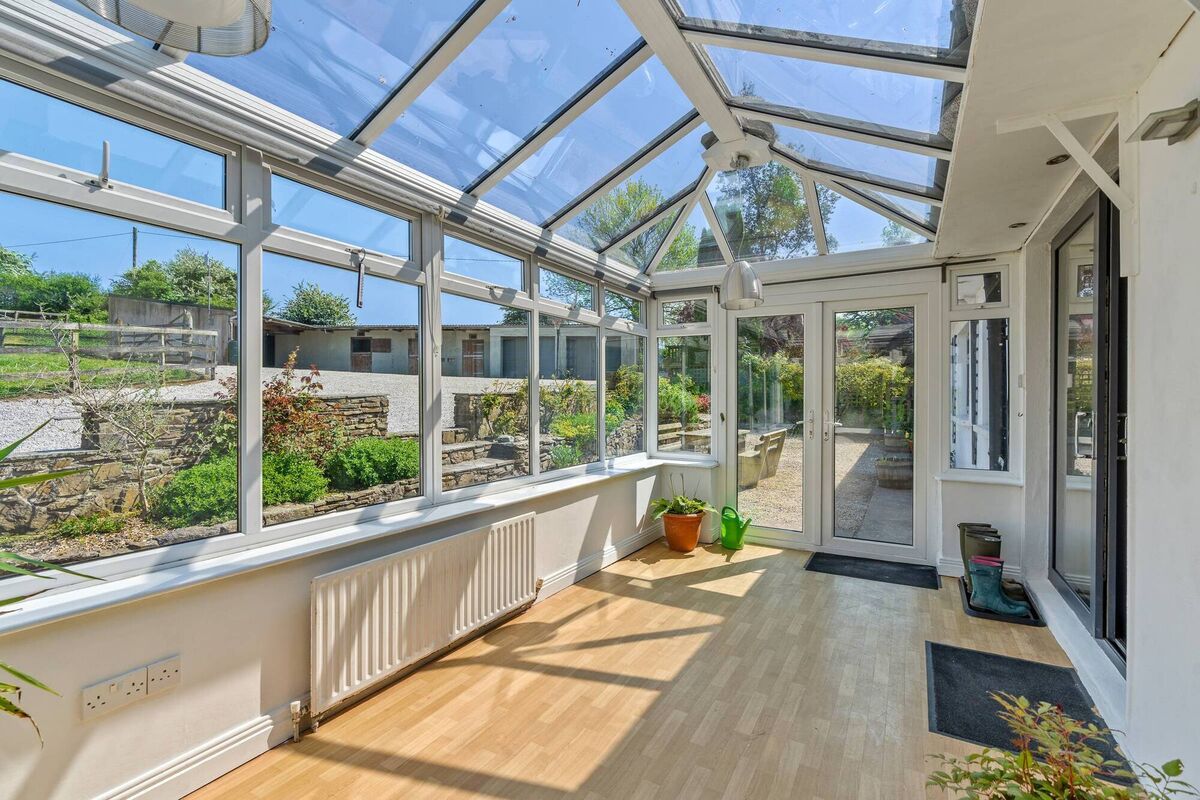 There’s a grass arena too, and a large feed and tack room (also for use as a covered hay barn) and there’s a water supply to three drinking troughs in the fields around the house, where horses or ponies can graze to their hock’s content. It’s the kind of set-up you’d envisage as the dream buy for a family of horsey types.