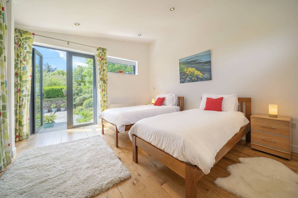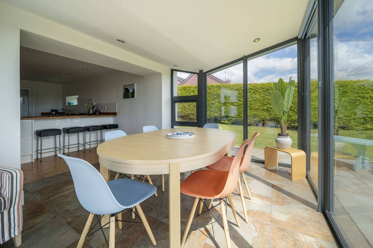 When the weather is good, flagstone patios to the front and rear are the places to be (one patio is accessible via French doors off a downstairs en suite double bedroom). The glazed dining area is superb any time of day or night.