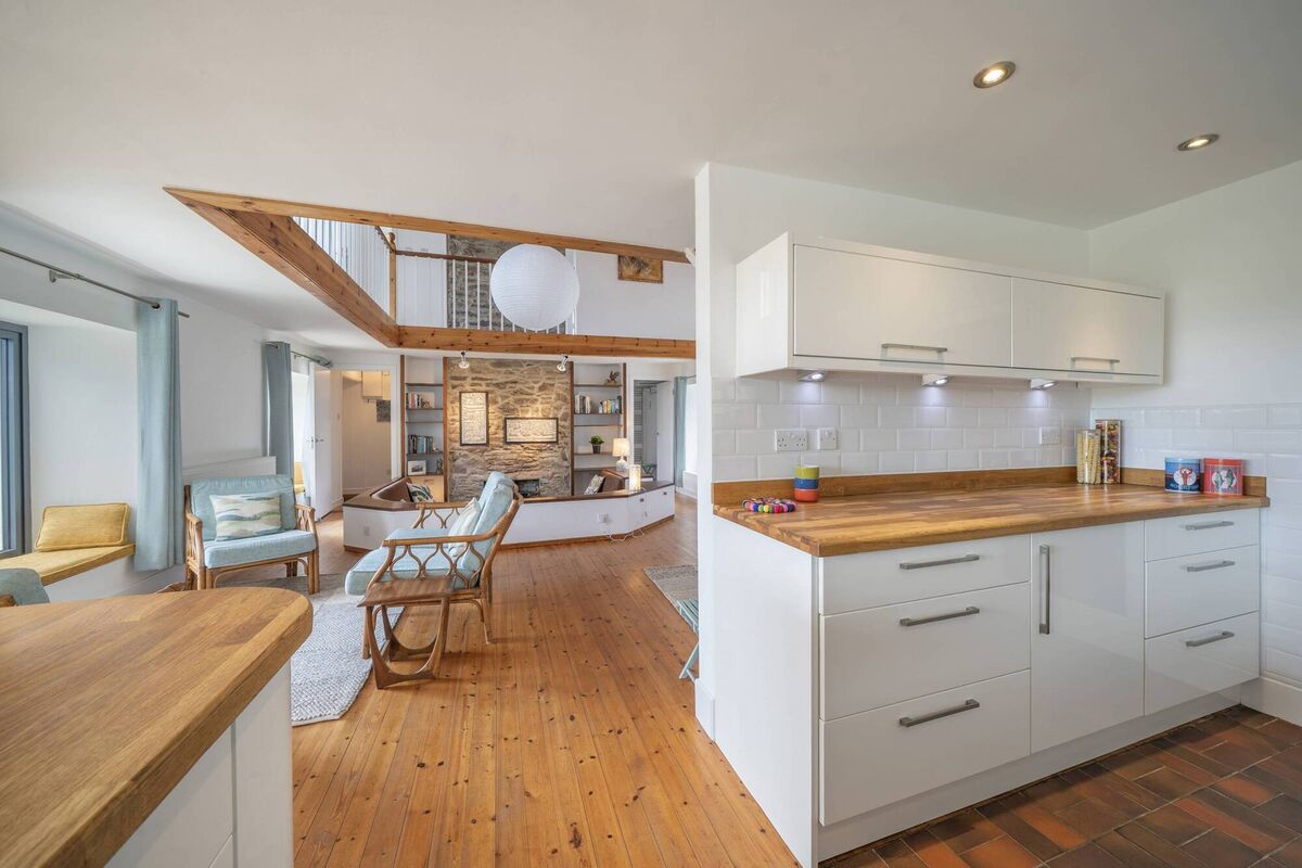 The roof was raised over the main open-plan area to create a 7m high vaulted ceiling with exposed timber beams.