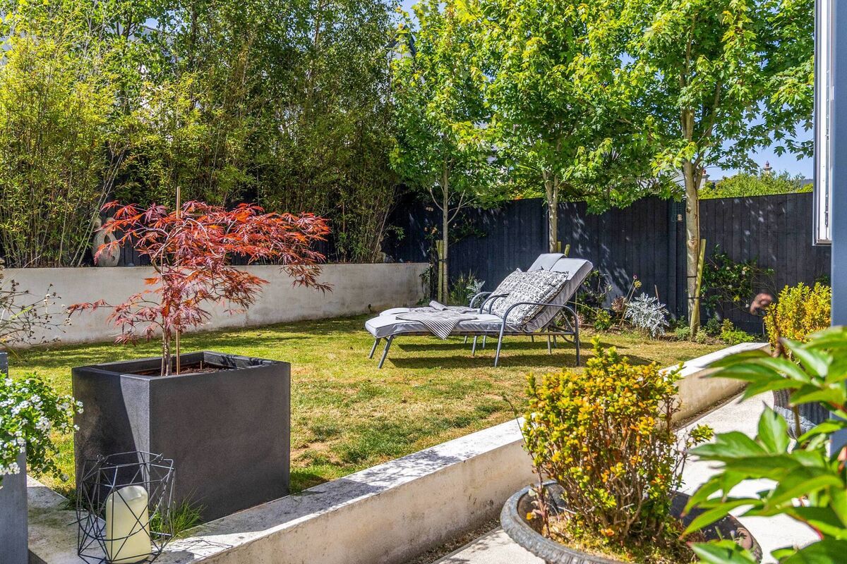 Its landscaped back garden, screened with high boundary walls, is also of a high quality, with acers, slender and non-invasive black bamboo Nigra in raised beds for a bit of architectural oomph, with side access and sizeable brick-paved patio reached from the kitchen and family area alike, ideal for easy entertaining and outside supping, whilst a glimpse at the neighbouring home also shows a keen eye for a garden, with one enhancing the other.