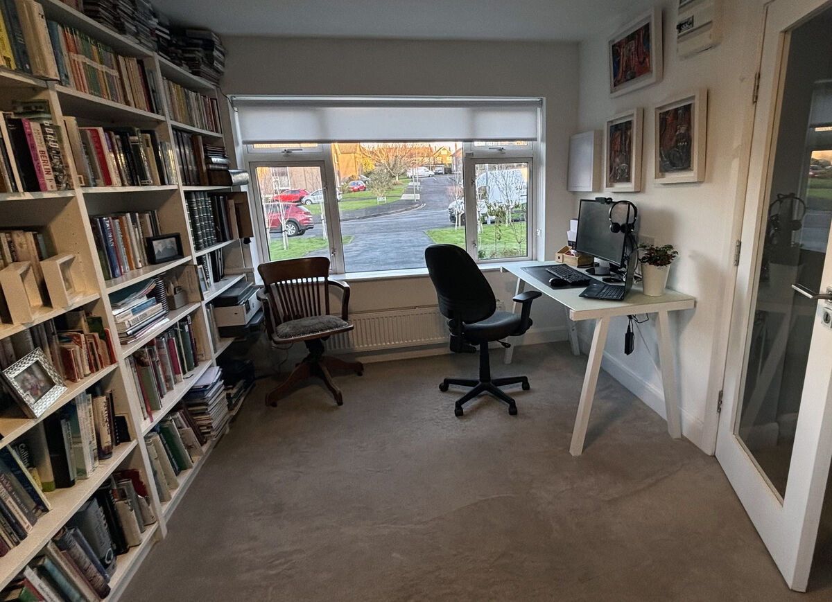 It now holds stylish units and a worktop/desk. It could be a home office, except there already is one in the doubly insulated garage, plus another office/study in a downstairs room.