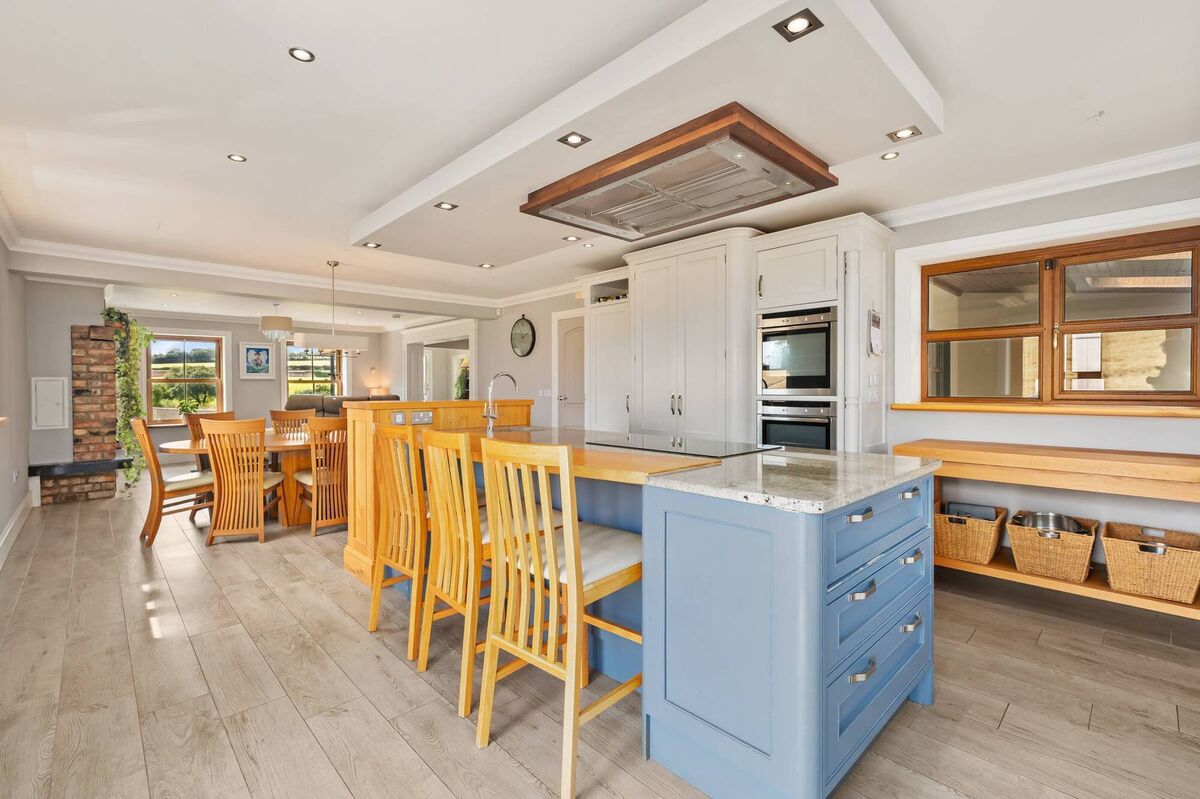 There’s a second stove in a separate living room, and there’s also a lounge on the ground floor — which has underfloor heating throughout.