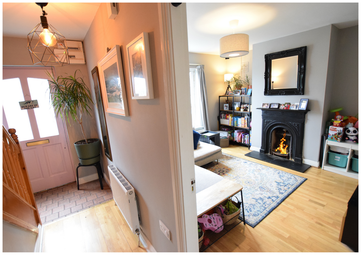 The terrace has a communal parking area at the front and the house has a narrow passage at the side with space for wheelie bins.