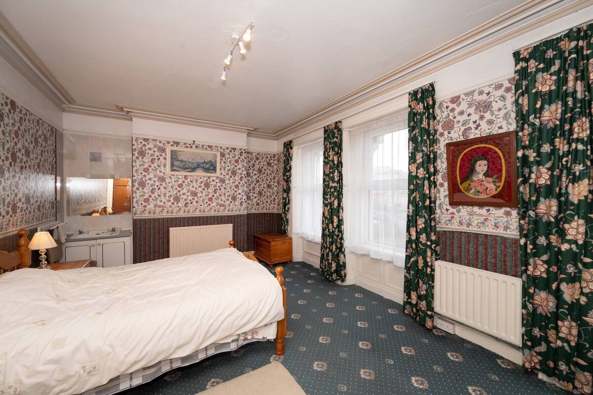 From the first floor, a trio of windows overlooks Victoria Road from the main, expansive bedroom. All bedrooms and bathrooms will need upgrades.