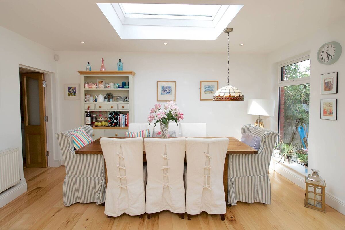 Beneath the Victorian-style pale floor tile is underfloor heating. This extension was completed in 2005.