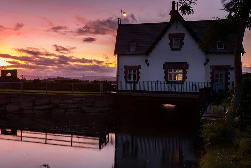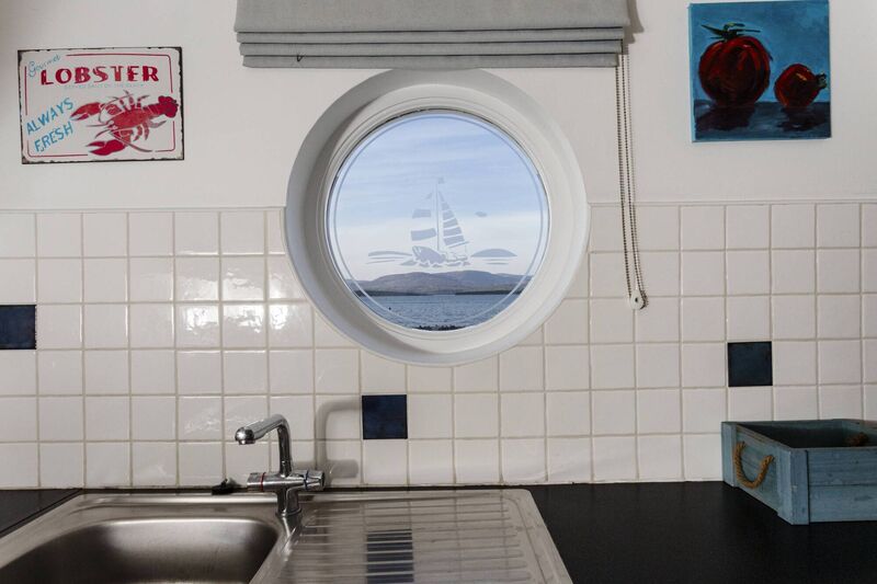 The two round, porthole-like windows frame the boat-related activity and, as if that isn’t enough, light outlines of small craft under sail are etched on the glass: the windows also pick up glorious sunsets over the Caha mountains to the west.