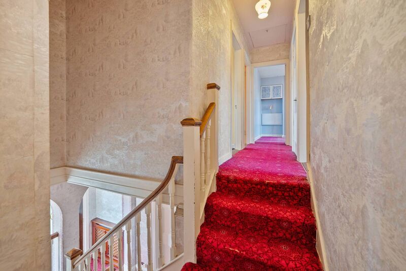 Right now, it has lots of architectural integrity, internal arches, some original fireplaces, interlinked main reception rooms, kitchen/dining room and with a curved sunroom off the kitchen.