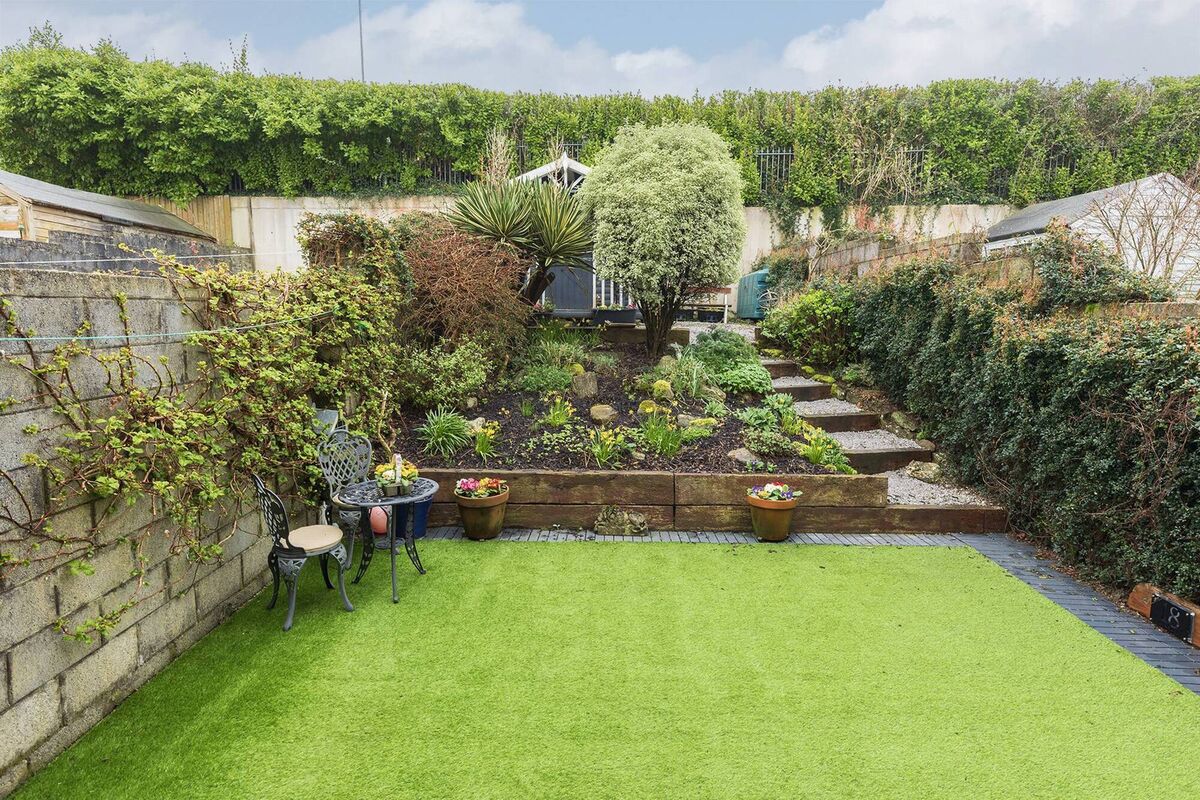Out through the double glass doors from the kitchen you’re into a pretty little south-facing terrace with attractive planting. And to the front you’ve got those sparkling sea views.
