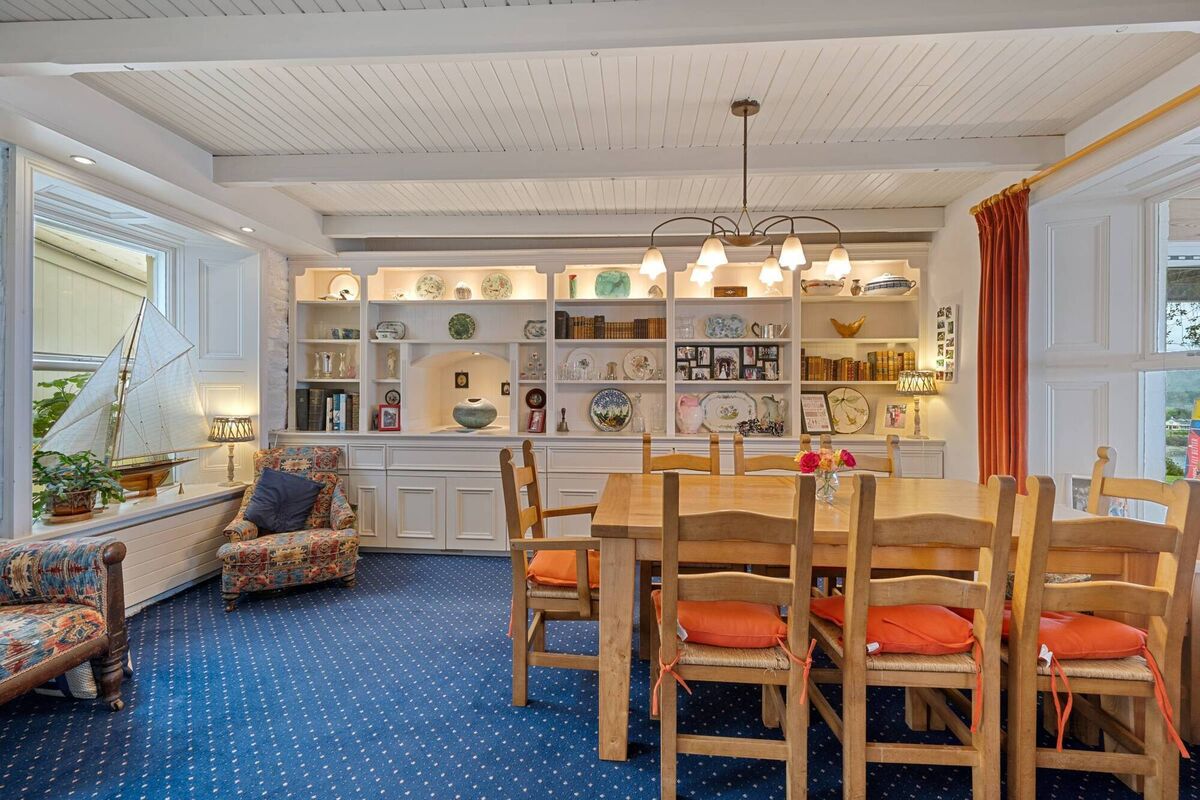 Added 40 years ago to the seaward side of the house — and still referred to as ‘new’ to distinguish it from the original build — it has two glass walls that frame the full sweep of the bay.