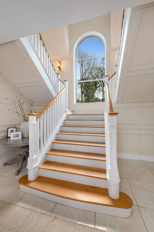 The boot room is just one example of skilled carpentry at Beechville; another is the staircase, where the main flight rises to a landing overlooked by a huge, arched window, before separating into two flights.