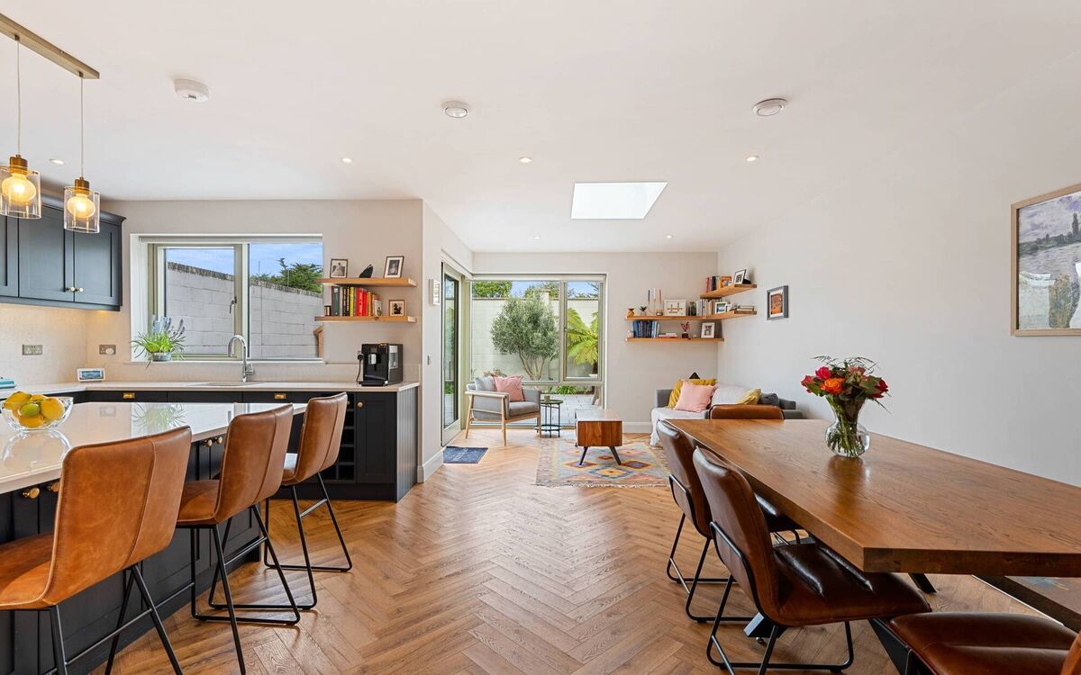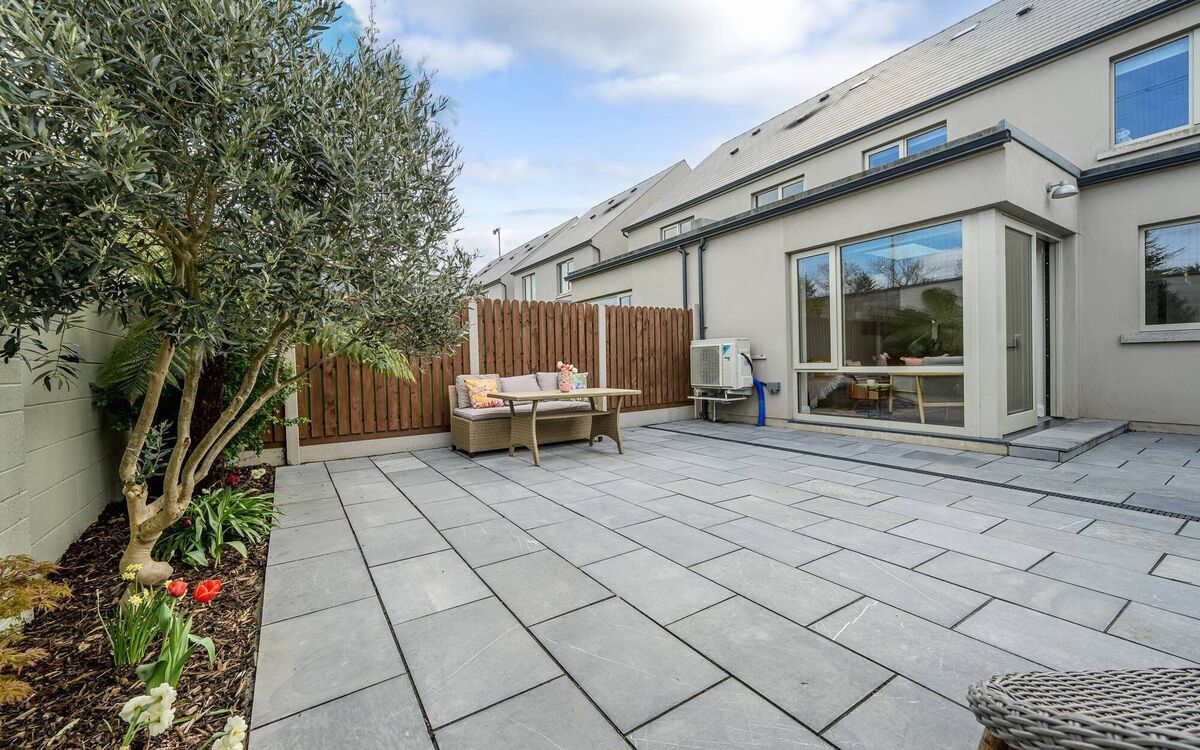 Clearly very familiar with it all, Savills’ Lawrence Sweeney says the A2 energy rating in an as-new home is another bonus on top of location, with a small green to the front and privacy to the largely paved back, where an olive tree keeping company with hydrangea and ferns might yield a garnish for martinis in decades to come.