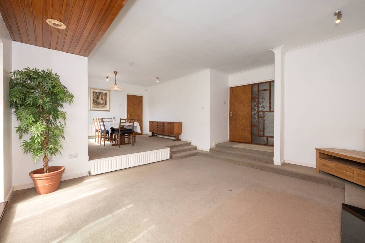 South-facing to the front, this split-level bungalow also has a spacious 287sq ft garage at the rear, which could be a workshop or even converted — subject to planning permission.