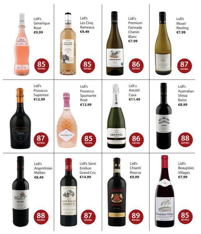 Whites and rosés also come in sparkling forms and sales of these wines have boomed in recent years, driven largely by the runaway success of Prosecco. I am not sure if it is a good habit or not but I always keep a bottle or two of Lidl’s Prosecco Superiore (€12.99, rating of 87) in the fridge in case of unexpected guests or an impromptu celebration. Fizz always seems to go down well, it adds a certain sparkle to any occasion and, although it is often drunk on its own with snacks, it is also a surprisingly good match for many lighter dishes. Lidl’s Prosecco Spumante Rosé makes an ideal gift when going round to friends, not only is the flavour beautiful but the stunning bottle gives your gift that extra edge. At only €12.99 with a rating of 85 it is a key item to add to your Summer shopping. Should you go for white or rosé? There is not a dramatic difference in flavour, so whatever takes your mood……..or perhaps whichever matches your outfit! And a shout out here for Lidl’s Arestel Cava a rating of 86 for only €11.49 – if there is a better value sparkling wine on the market, I have yet to find it.