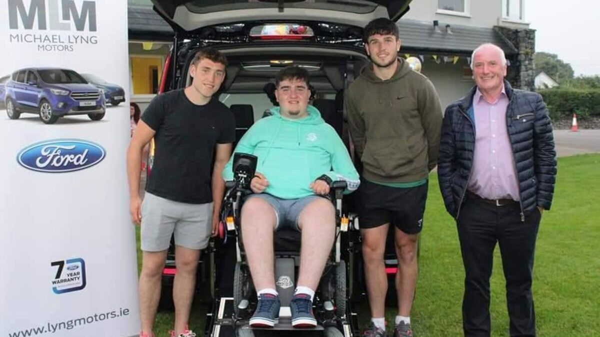 Spa clubman Ian O’Connell was presented with a new wheelchair accessible vehicle at his club grounds on Friday. On his 19th birthday, O’Connell was surprised to be presented with the new car having received his first vehicle courtesy of the KN Group All-Ireland GAA Golf Challenge and Michael Lyng Motors in 2018. Funded by friends of the Challenge and Lyng Motors, Ian is pictured with his new Ford Tourneo Connect flanked by Spa’s Kerry senior stars Dara Moynihan, Liam Kearney, and Michael Lyng. Ian was paralysed from the neck down after falling off his bicycle in August 2017.