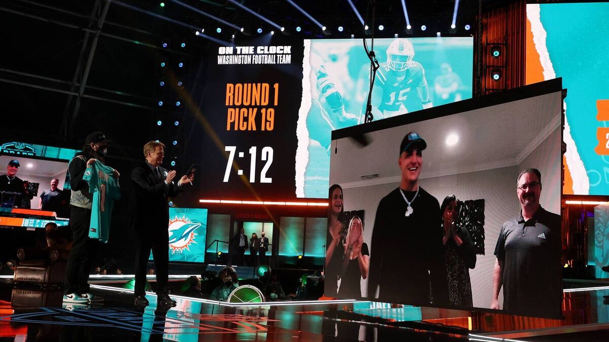 NFL Commissioner Roger Goodell announces Jaelan Phillips as the 18th selection by the Miami Dolphins during round one of the 2021 NFL Draft at the Great Lakes Science Center in Cleveland, Ohio last Thursday. Could the GAA do with a Draft Pick process to spread talent more evenly across all the teams of the championship?