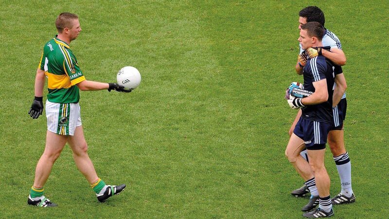After kicking the most famous free in All-Ireland final history in 2011, Stephen Cluxton booted away the prized match ball handed to him by Tomás Ó Sé on his way to retiring to the dressing room. Picture: Dáire Brennan / SPORTSFILE