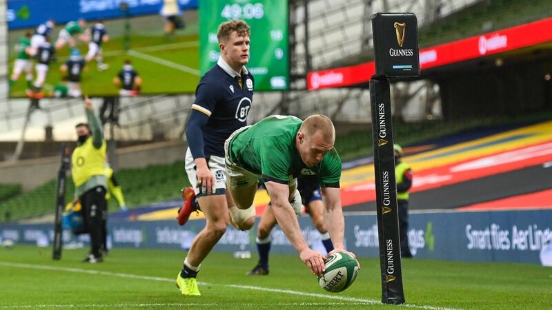 SUBSCRIBEKeith Earls touches down for Ireland’s third try against Scotland in their Autumn Nations Cup clash at the Aviva on Saturday. Picture: Ramsey Cardy/Sportsfile