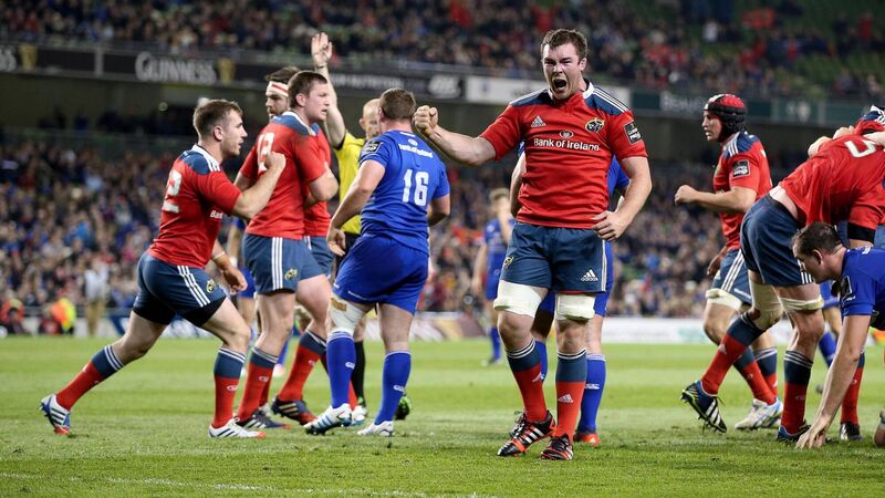OH WHAT A NIGHT: Munster's Peter O'Mahony celebrates at the end of the 2014 clash with Leinster at the Aviva Stadium. Pic: INPHO/Dan Sheridan