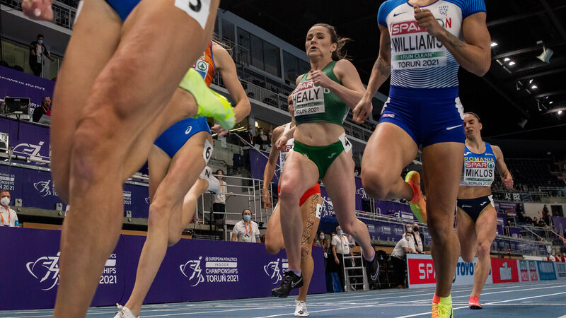 FINE MARGINS: Ireland’s Phil Healy just misses out on a medal in the final of the Women’s 400m at the European Athletics Indoor Championships in Torun on Saturday. Picture: Inpho/Morgan Treacy
