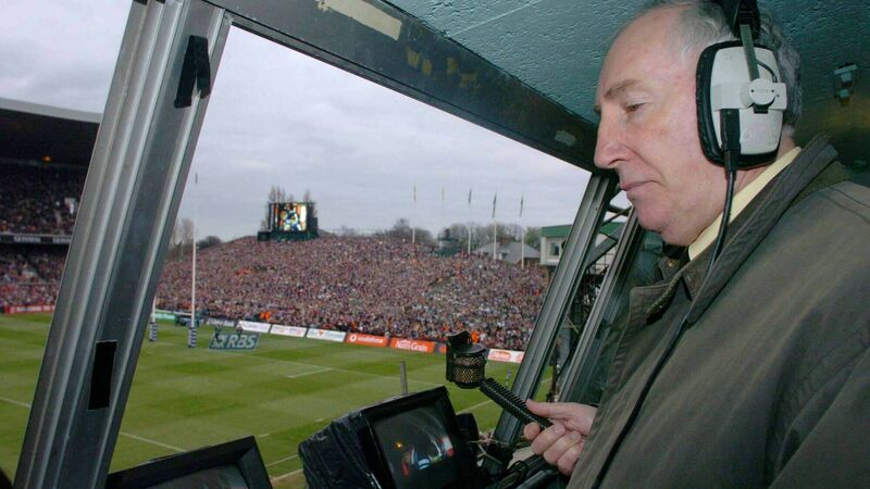 END OF AN ERA: Jim Sherwin commentates on his last rugby game for RTĂ, the 2004 Six Nations match between Ireland and Scotland at Lansdowne Road. He died earlier this week, aged 81, following a short illness. Picture: David Maher/Sportsfile