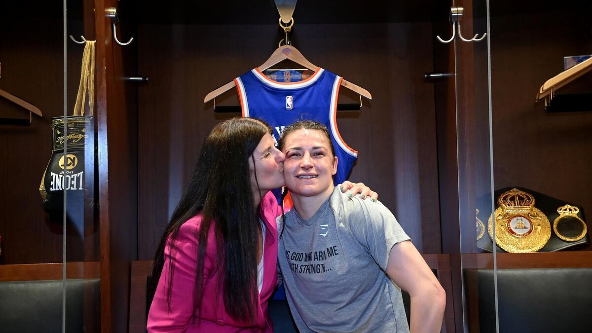 Katie Taylor and her mother Bridget after her undisputed world lightweight championship fight with Amanda Serrano at Madison Square Garden in New York