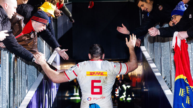 NOT RUSHING BACK: Munster's Tadhg Beirne with supporters after the Investec Champions Cup Round 1 clash at the Recreation Ground, Bath. Pic: INPHO/Tom Maher