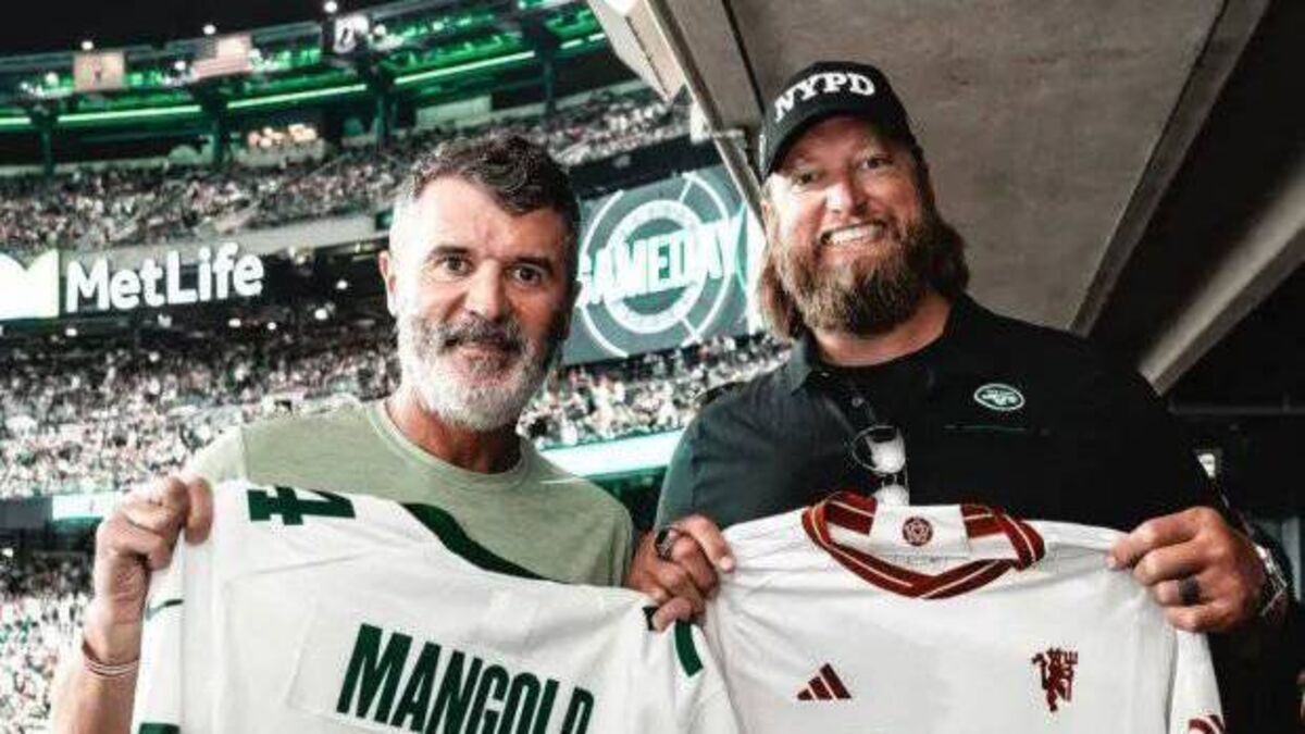 A NEW YORK MINUTE: Roy Keane with NY Jets legend, Nick Mangold. Picture: NY Jets