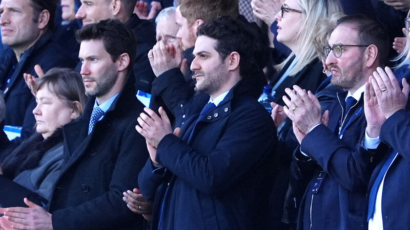 777 Partners co-founder Josh Wander (centre) before the Premier League match at Goodison Park.