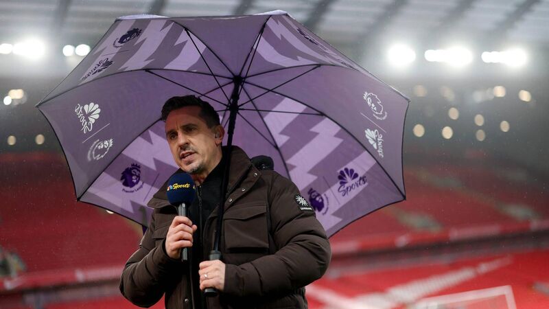 Gary Neville presents with NBC Sport at Anfield (Photo by Carl Recine/Getty Images)